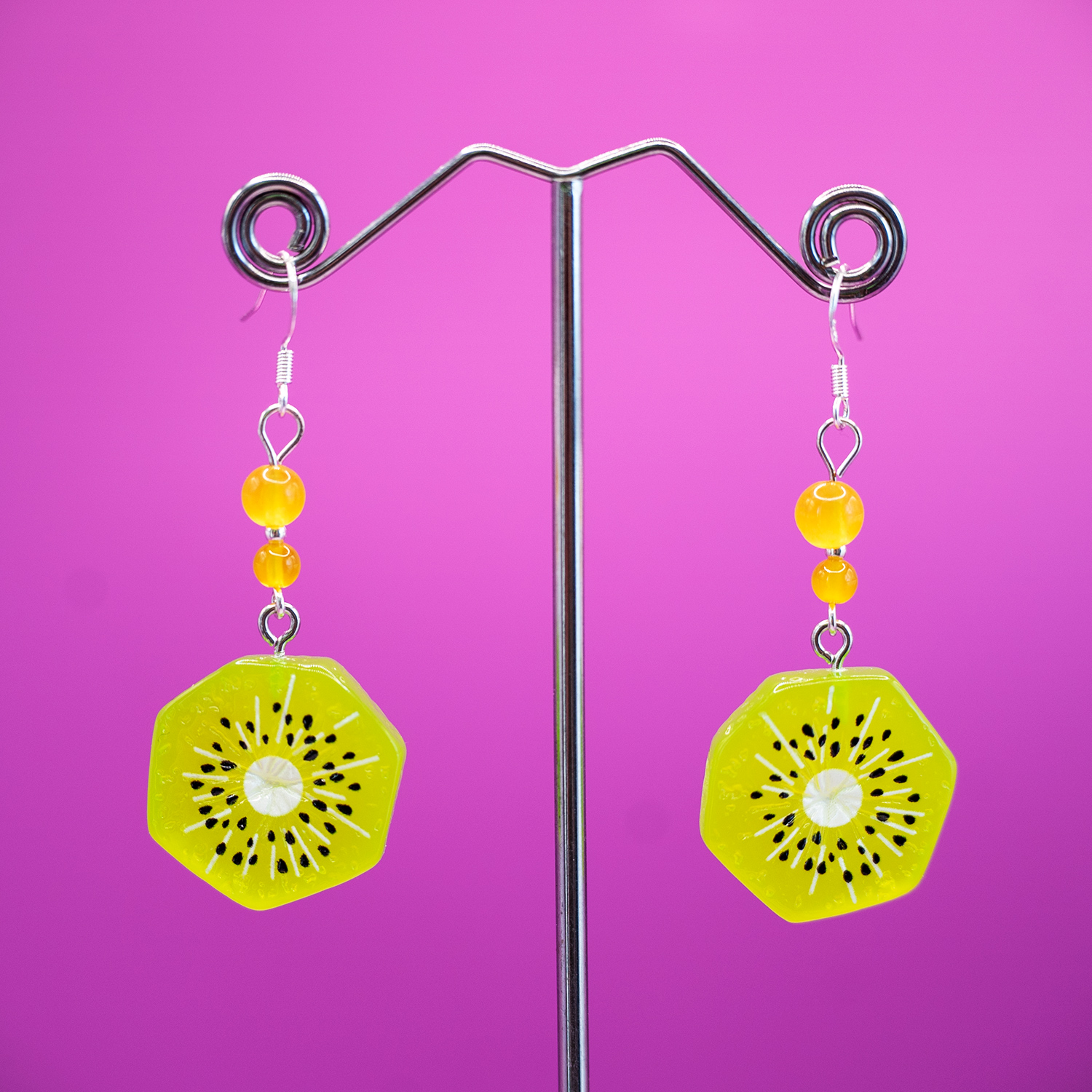 Bright colours and some blatant love for the world’s most favourite sort of kiwi, here are some kiwi fruit earrings.