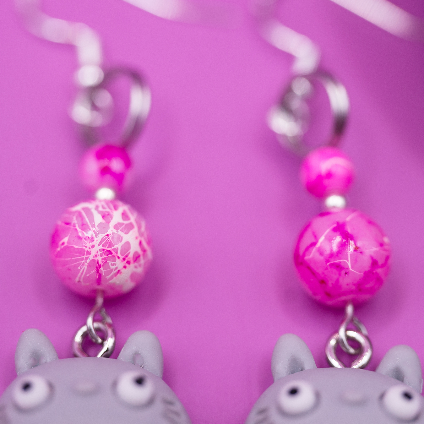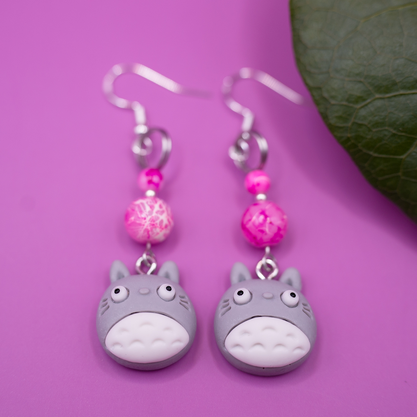 As someone mildly obsessed with this wee potato, I actually have about 10 different styles of Totoro earrings available that I sell at markets, but they’re all unique, which doesn’t work for the web shop, so here is the cutest style of them all, the 3D ones, paired with cute pink glass beads and sterling silver hooks.